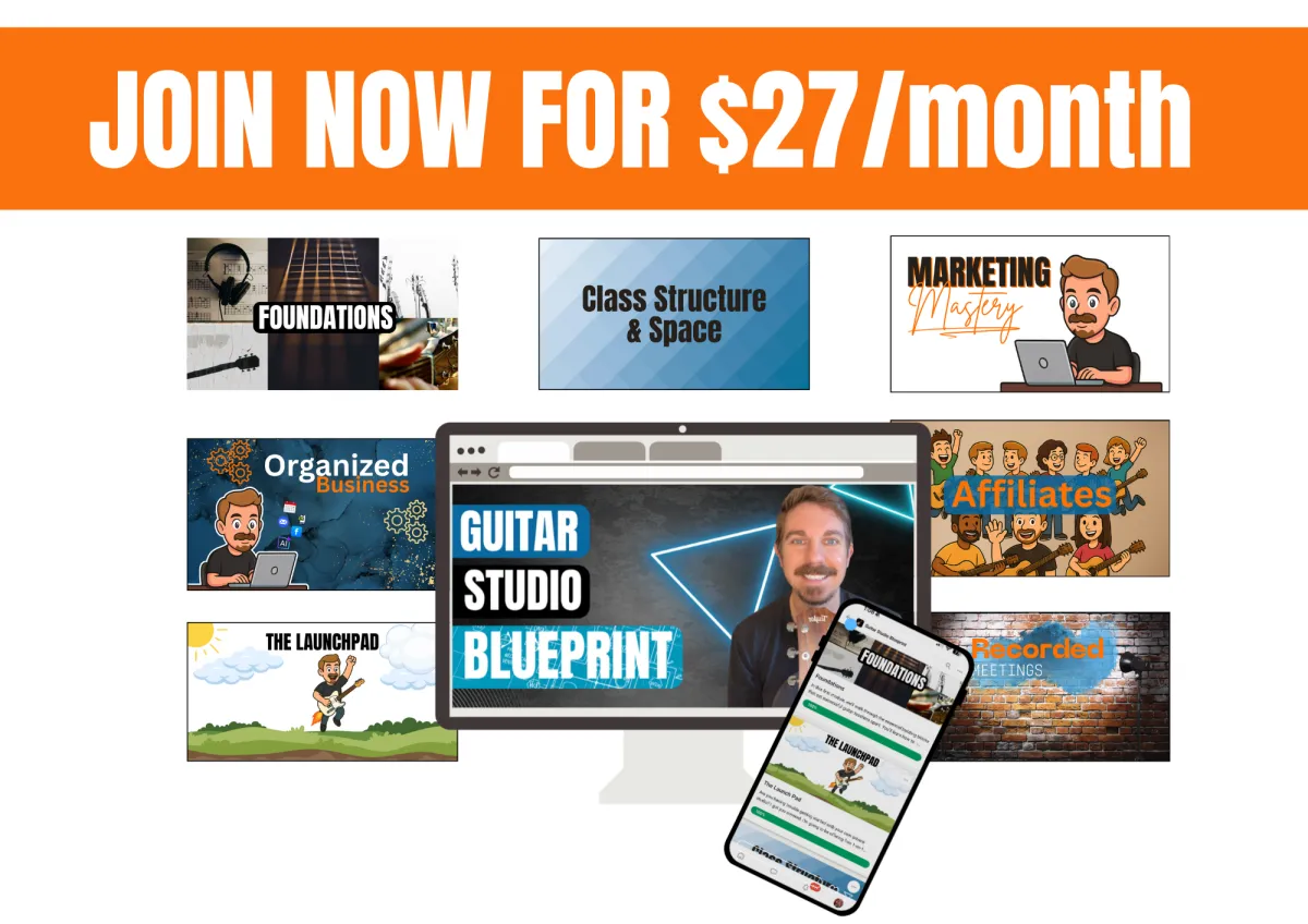 A community of fellow guitarist where you can share resources and ideas. This is the most valuable part of this entire membership because YOU are not alone in the journey to starting a business teaching private lessons.